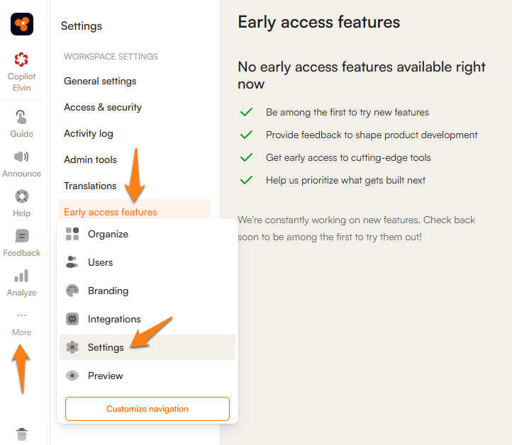 Accessing and managing Early Access features is straightforward. Follow these steps: