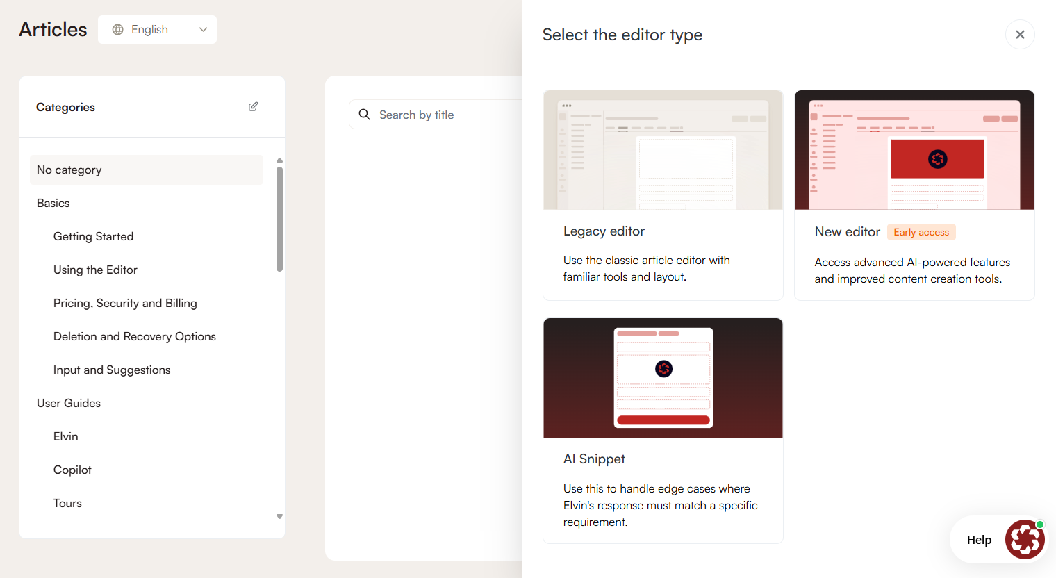 - Navigate to Help > Articles.