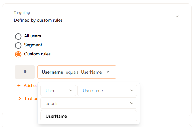 To create a custom rule for your username you can instead select Custom rules and target to your specific username with a rule such as If User Username equals (your username).