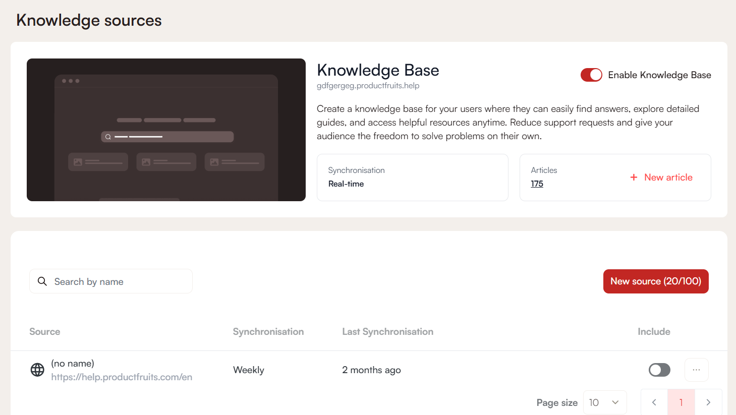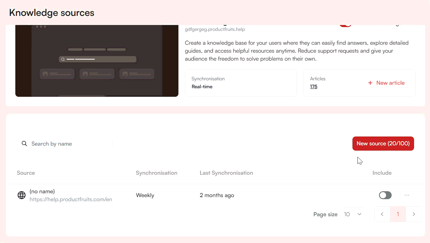 In addition to knowledge base content, you can add websites or documents as external sources. The number of sources depends on your subscription plan and applies across all workspaces. You can check your exact source limits on the Pricing page.