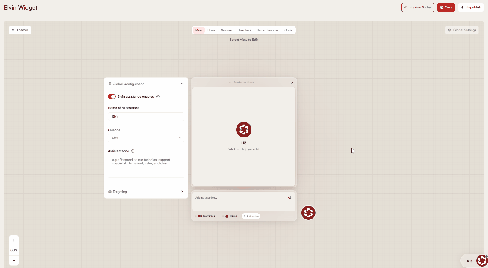 Even in the preview, you can test and have a conversation to see how Elvin responds and how the widget looks and behaves.