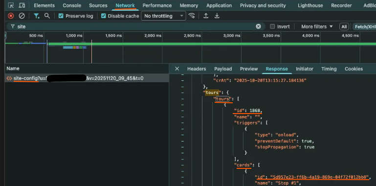 Returns an array of all tours. The tour object contains id, name, isRunning, currentCard and userState fields. Possible userState values are not_finished (the user hasn't seen the tour yet), finished (the user finished the tour) or skipped (the user skipped the tour). The isRunning field says if the tour is currently open. The currentCard field contains information about the currently open card. It is null if the tour is not running. It contains an object with id and name fields.