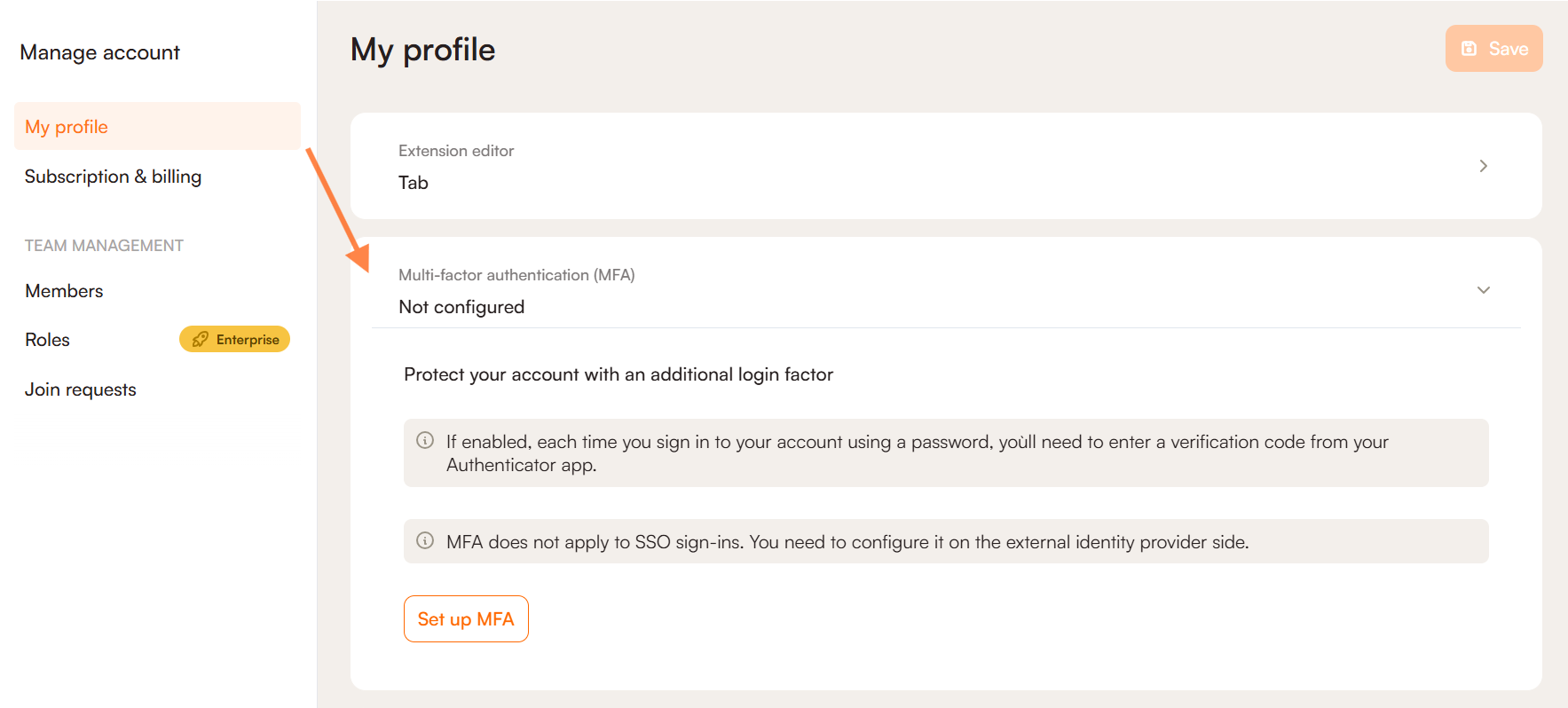 When you arrive on the My Profile page, you should see a section containing the MFA settings: