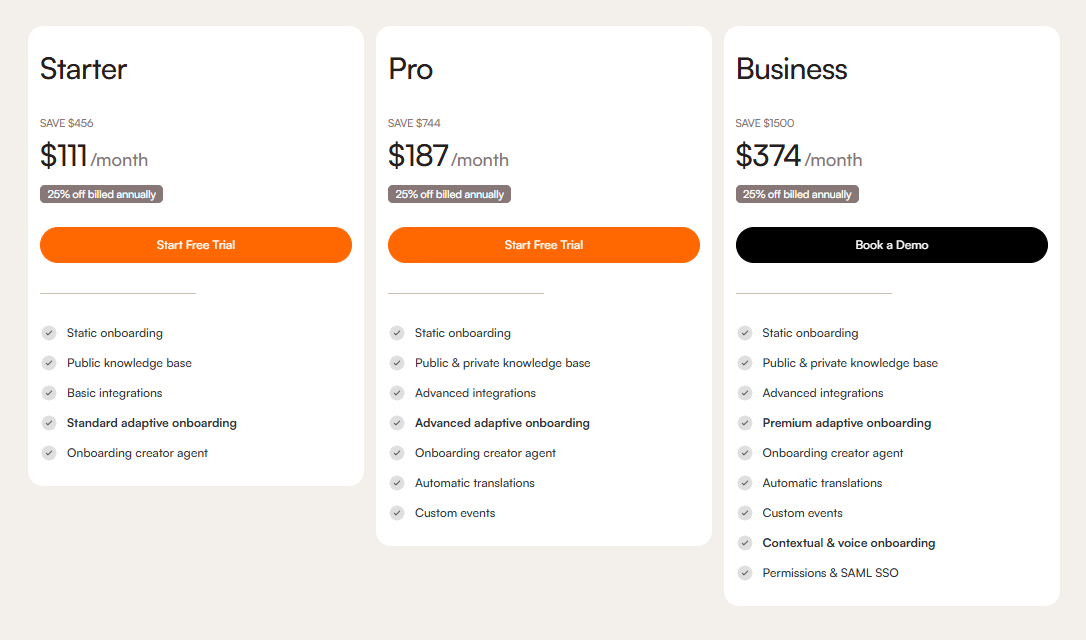 As of February 2026, Product Fruits introduces its new pricing tiers: Starter, Pro, and Business. A custom plan is also available for teams whose needs fall outside these options - to configure it, contact our sales team. For a detailed breakdown of what's included at each tier, please consult our pricing page.