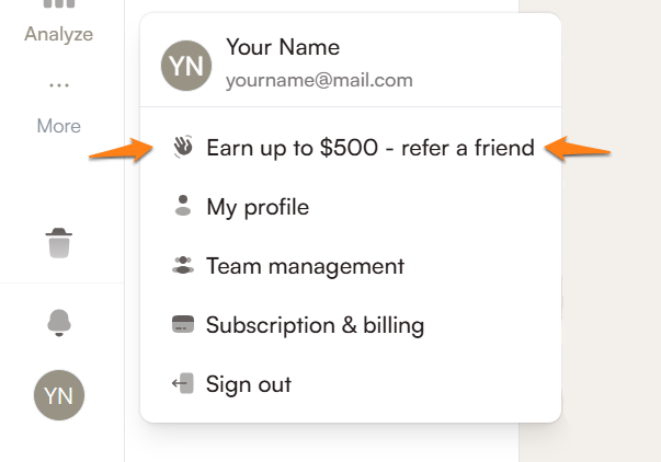 You can earn up to $500 per successful referral. When a referred user purchases a paid plan, you receive 50% of the monthly subscription cost. This reward continues until the $500 cap is reached for each individual referral.